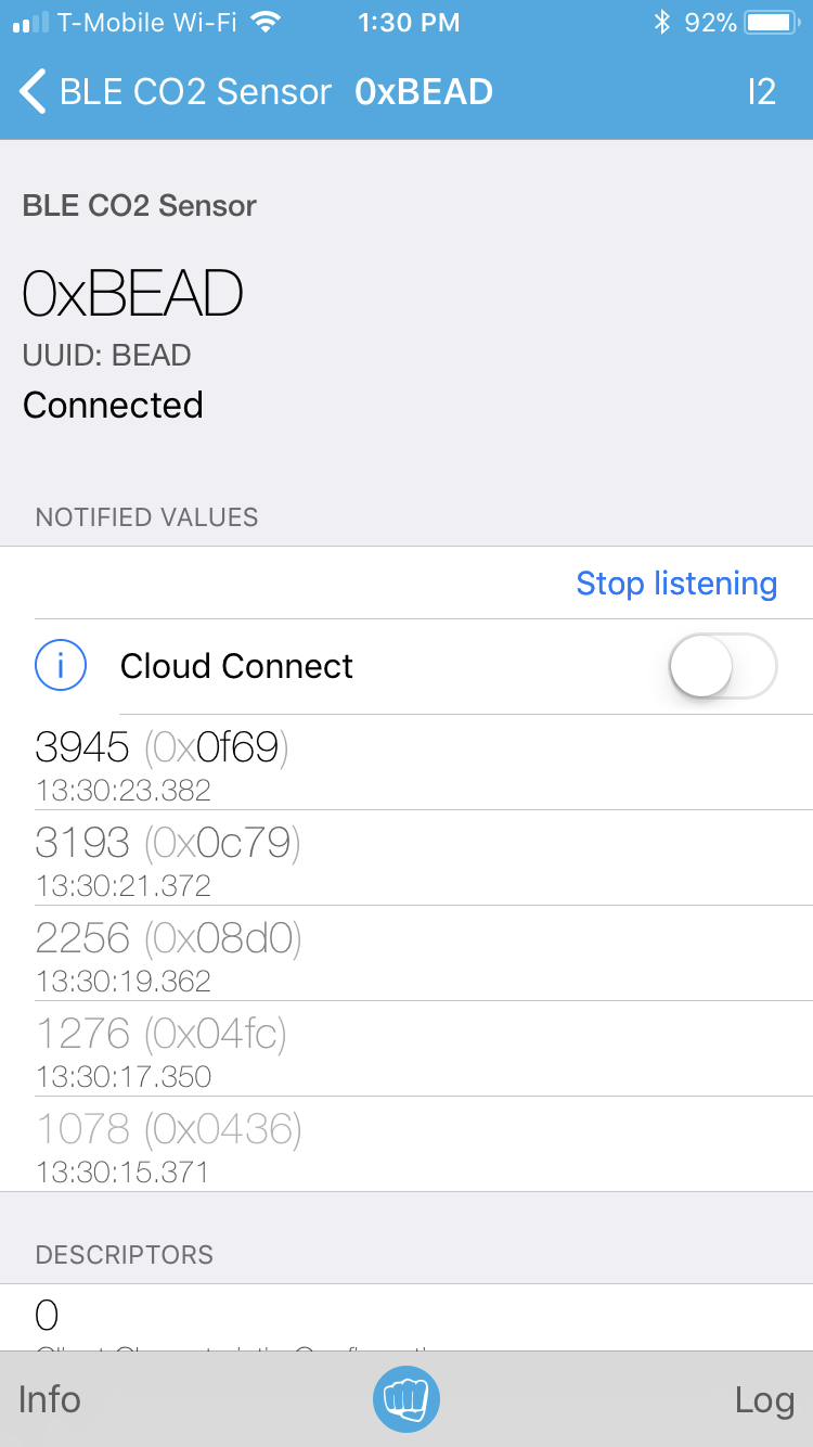 Since we already built the previous demo on the bluetooth peripheral basic app most of the Bluetooth plumbing has already been taken care of for us. What’s left is for us to add the required GATT services for advertising the Carbon Dioxide sensor so that other devices can get those values.