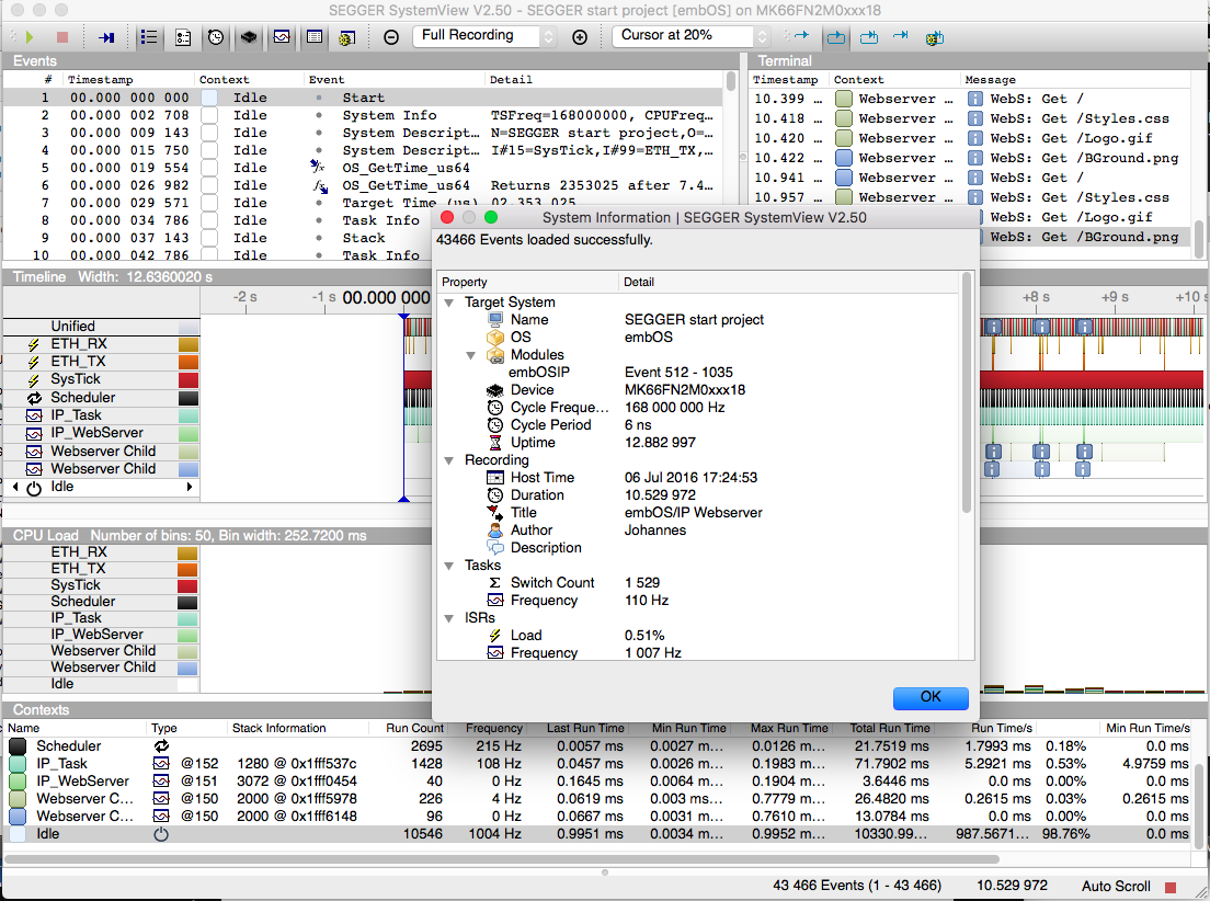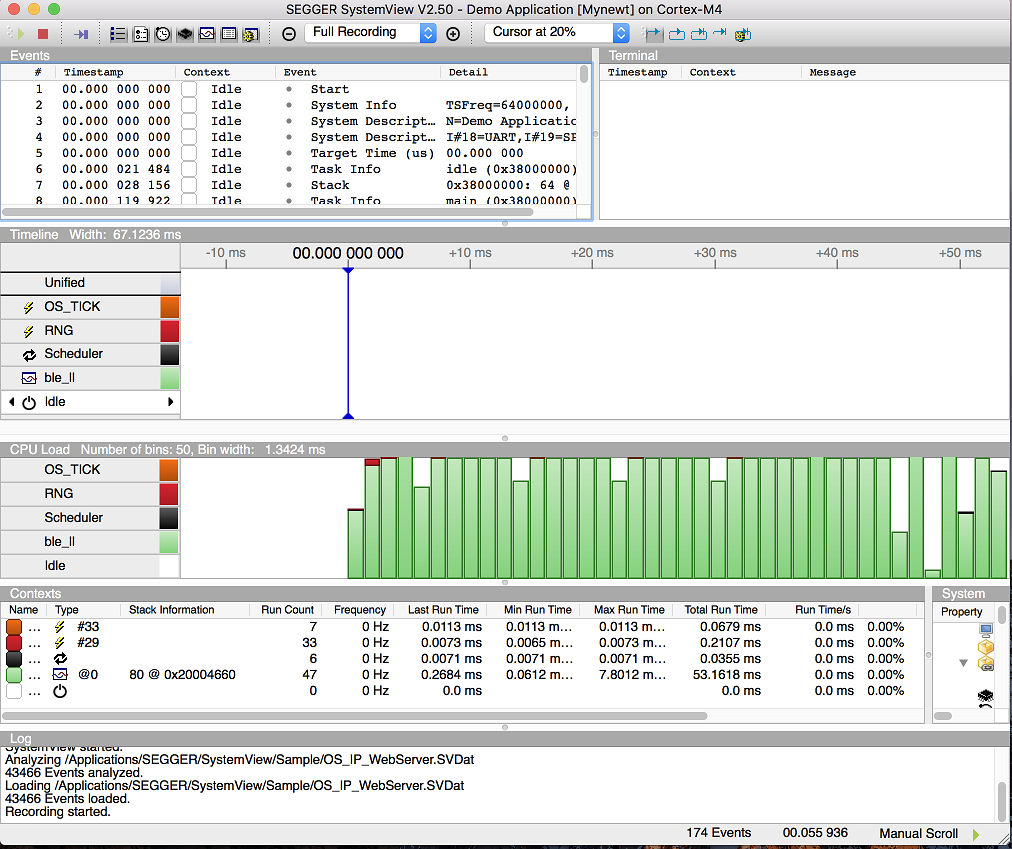 With SEGGER’s SystemView you can “record data from the target system while it is running. The recorded data is analyzed and the system behavior is visualized in different views.”